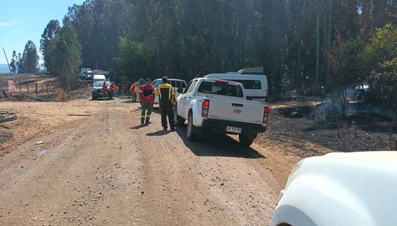 En el lugar las empresas se encontraban trabajando con 5 furgones de traslado de los brigadistas, 3 skidder, 1 bulldozer y 1 camión aljibe. Además, se encontraban con un resguardo de 3 carabineros.