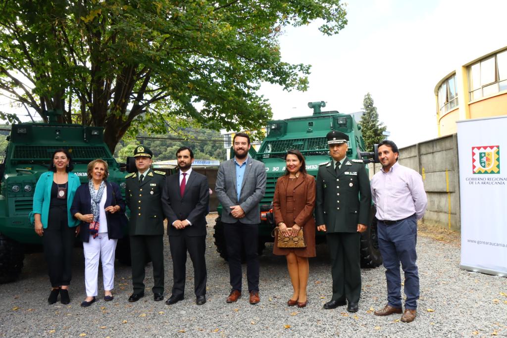 Con el objetivo de resguardar la seguridad de los funcionarios de Gendarmería como también de los internos, el Gobierno Regional de La Araucanía hizo entrega a la institución dos modernos vehículos Marca Ford F550, únicos en el país, iniciativa que alcanzó una inversión de $720 millones y cuentan con blindaje, neumáticos runflat (antipinchazos) y cámaras de vigilancia, entre otras características.