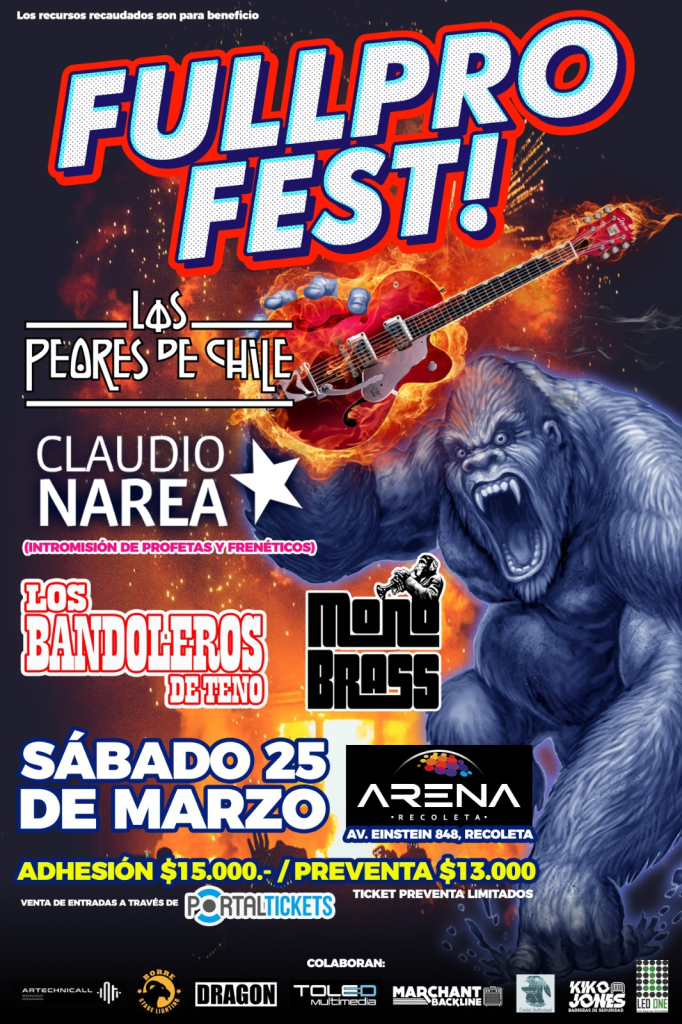 El “Fullpro Fest”, se llevará a cabo en la sala Arena Recoleta, perteneciente a la Asociación Cultural de Música y Arte Independiente, ubicada en Avenida Einstein # 848, Recoleta. La adhesión es de $15.000 (preventa $ 13.000). Los boletos se pueden adquirir a través del sistema Portaltickets.