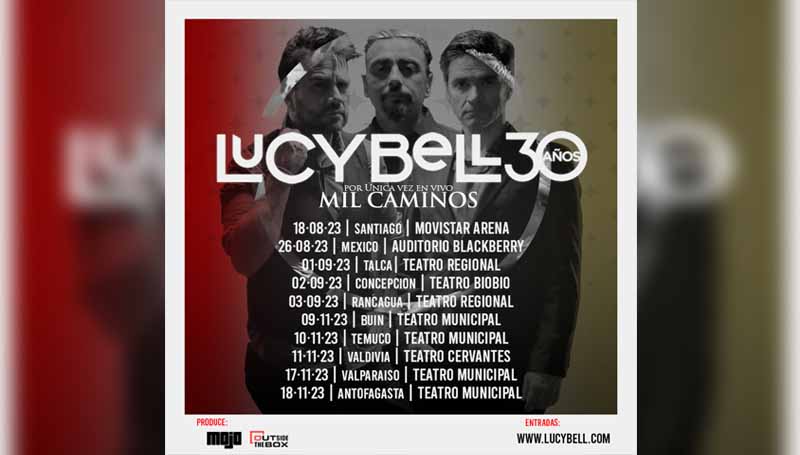 La “Gira Mil Caminos” los llevará por Talca, Concepción, Rancagua, Antofagasta, Valparaíso, Buin, Temuco y Valdivia. Esto, además de incluir una sección acústica para el concierto de Movistar Arena en agosto, lo que se suma al show que Lucybell ofrecerá en Ciudad de México en el Blackberry Center, también en agosto de este año.