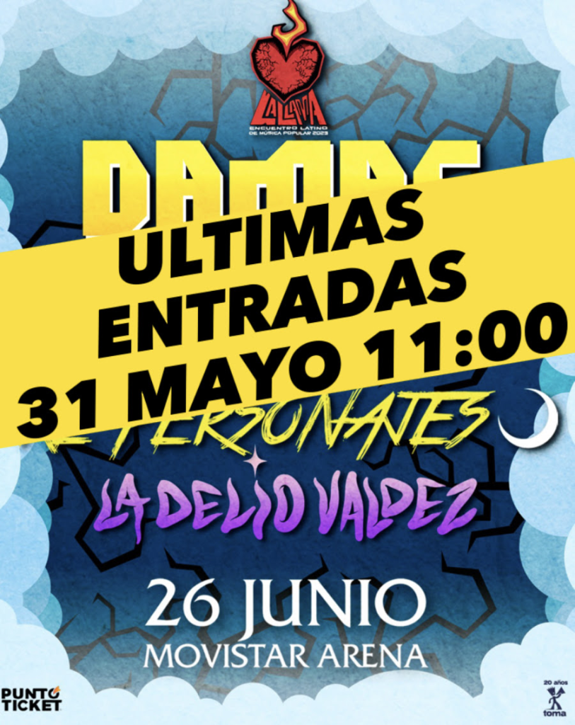 Con todas las ubicaciones agotadas desde el fin de semana pasado, y debido a la alta demanda por tickets para el encuentro latino de música popular La LLama 2023, que incluye el show de Damas Gratis, además de Ke Personajes y La Delio Valdez más un invitado nacional, es que se liberarán nuevas ubicaciones (vistas parciales y un pequeño remanente de plateas).