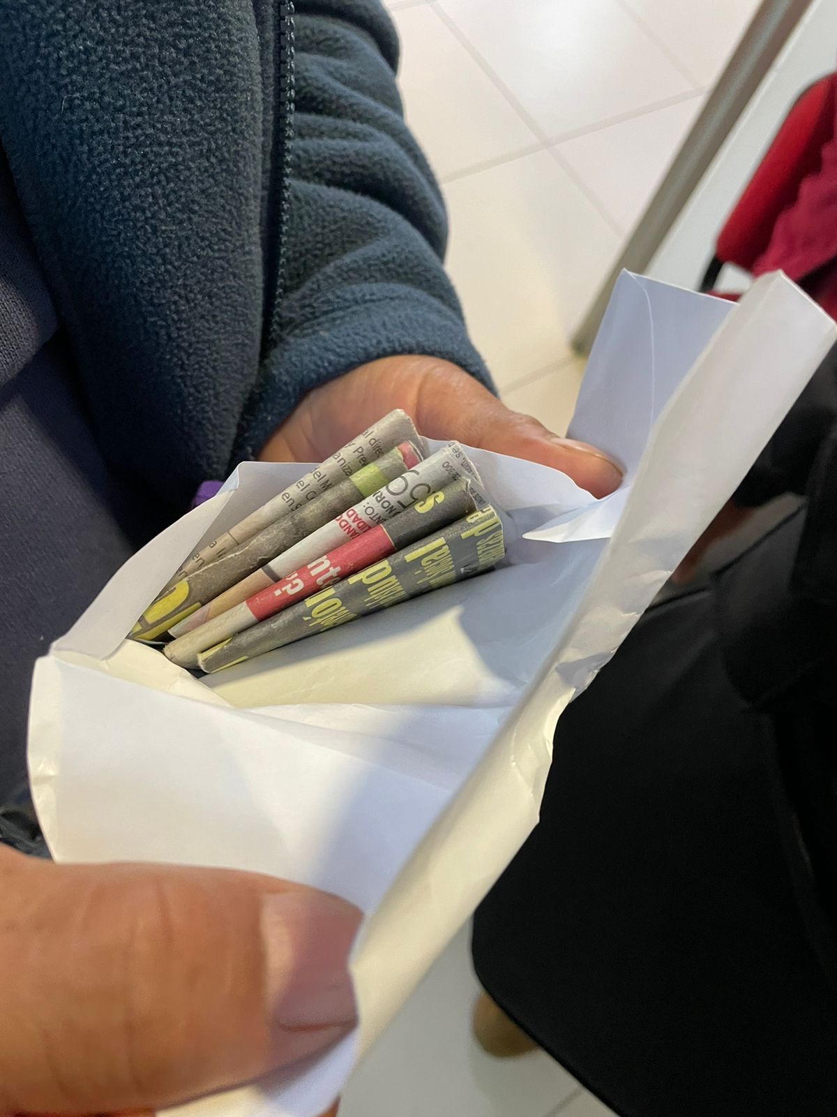 En la revisión de las pertenencias de los antisociales se decomisó un sobre con papel de diario doblado (foto) que simulaba ser dinero, el cual, mediante el engaño, habrían intercambiado con la víctima quien, a su vez, entregó el sobre con $500 mil.