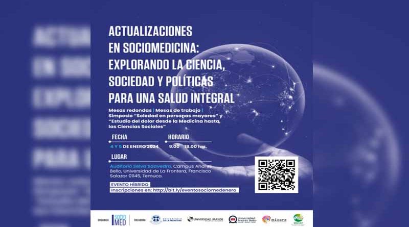 El próximo 4 y 5 de enero de 2024, se llevará a cabo el evento híbrido y gratuito “Actualizaciones en Sociomedicina: Explorando la Ciencia, Sociedad y Políticas para una Salud Integral” organizado por Sociomed y en colaboración con la Universidad de la Frontera, la Universidad Mayor, la Universidad Andrés Bello, Instituto Milenio para la Investigación de la Depresión (MIDAP) y Millennium Institute for Care Research (Micare).