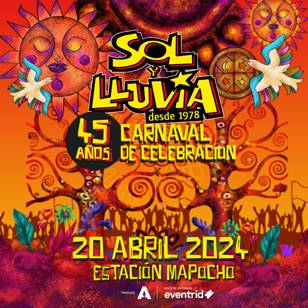 La invitación está hecha para celebrar y festejar los 45 años de Sol y Lluvia, el sábado 20 de abril en la Estación Mapocho. Tickets disponibles a través del sistema Eventrid y en boletería el día del concierto.