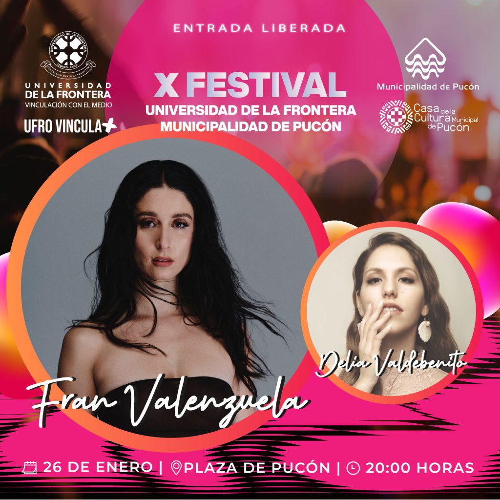 Ya está todo listo para lo que será la X versión del Festival de Música Pucón 2024, evento organizado por la Universidad de La Frontera y la Municipalidad de Pucón. En esta ocasión serán tres días de fiesta con una diversa cartelera de artistas, quienes se presentarán en la Plaza de Armas de Pucón, en una actividad gratuita y abierta a todo público.