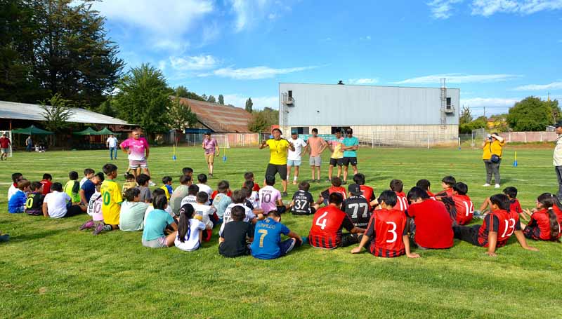 Más de 120 niños y niñas de distintos sectores de la comuna de Ercilla se dieron cita en el Estadio Municipal para participar de una Clínica de Fútbol Infantil a cargo de Rodrigo “Kalule” Meléndez. El evento, organizado por la municipalidad y apoyado por CMPC, partió este viernes a las 18.00 horas, convocando a menores de 6 a 13 años del Taller Municipal, la escuela formativa Santa Marcela de Pidima, la Escuela de fútbol de Pailahueque y la escuela formativa Club Deportivo Gregorio Urrutia de Ercilla.