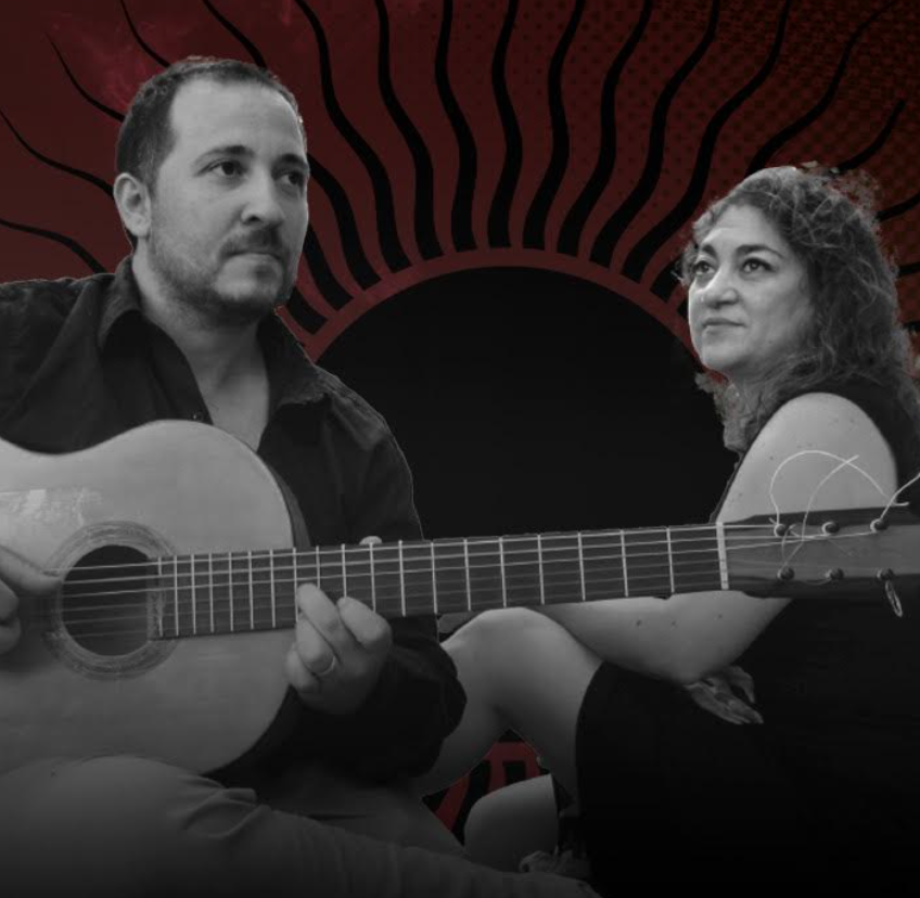 La presentación estará a cargo de Cecilia Benítez y Bruno Calanni, voz y guitarra respectivamente. Oriundos de General Roca, son destacados músicos sudamericanos que ofrecerán un repertorio íntimo, recorriendo a través de las cuerdas paisajes y personajes del folklore sureño y patagónico. Ambos son docentes universitarios en el Instituto Universitario Patagónico de las Artes, con experiencia en diferentes agrupaciones de la zona.