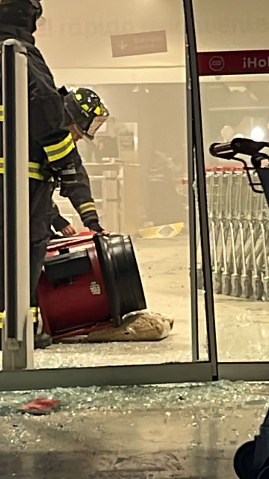 Bomberos recibió un llamado minutos antes de la emergencia en el supermercado, informando de un auto en llamas en el cruce Trañi Trañi en la ruta a Labranza. Sin embargo, al llegar la 10ª Compañía de Bomberos al lugar, no encontraron ningún vehículo incendiado, sino una barricada compuesta de neumáticos encendidos, basura y miguelitos, utilizados para obstaculizar el tránsito.