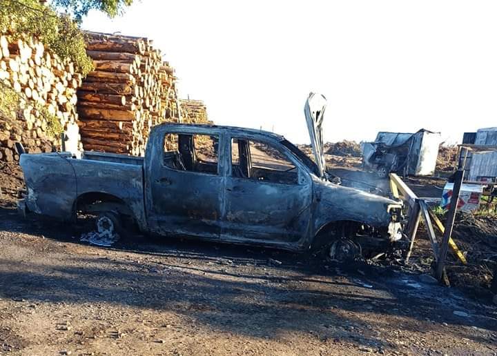 Vecinos del sector lograron captar imágenes y videos del momento en que el vehículo menor ardía en llamas, bloqueando el acceso al predio. Según relatos, los atacantes habrían irrumpido en el área para incendiar la camioneta, antes de trasladarse hacia el interior del predio, donde prendieron fuego a las maquinarias forestales.