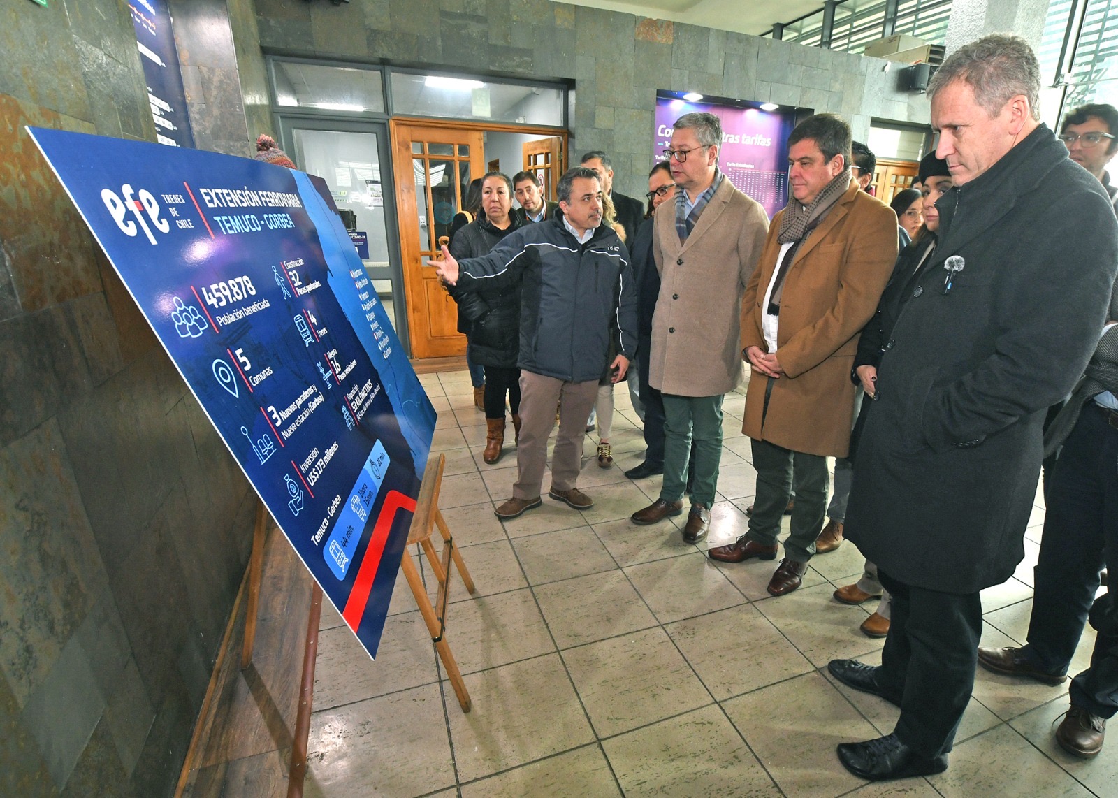 De esta manera, El gerente de la División de Proyectos de EFE, Ricardo Montecino y el Gerente General de EFE Sur, Nelson Hernández, informaron que la rehabilitación de la vía hasta Victoria, tiene un avance 52% y reducirá el tiempo de viaje de 1 hora 26 minutos actuales, a solo 57 minutos a fines de 2026. Las obras contemplan el reemplazo de rieles, durmientes y la automatización de los cruces, con una inversión total de 77 mil millones de pesos.