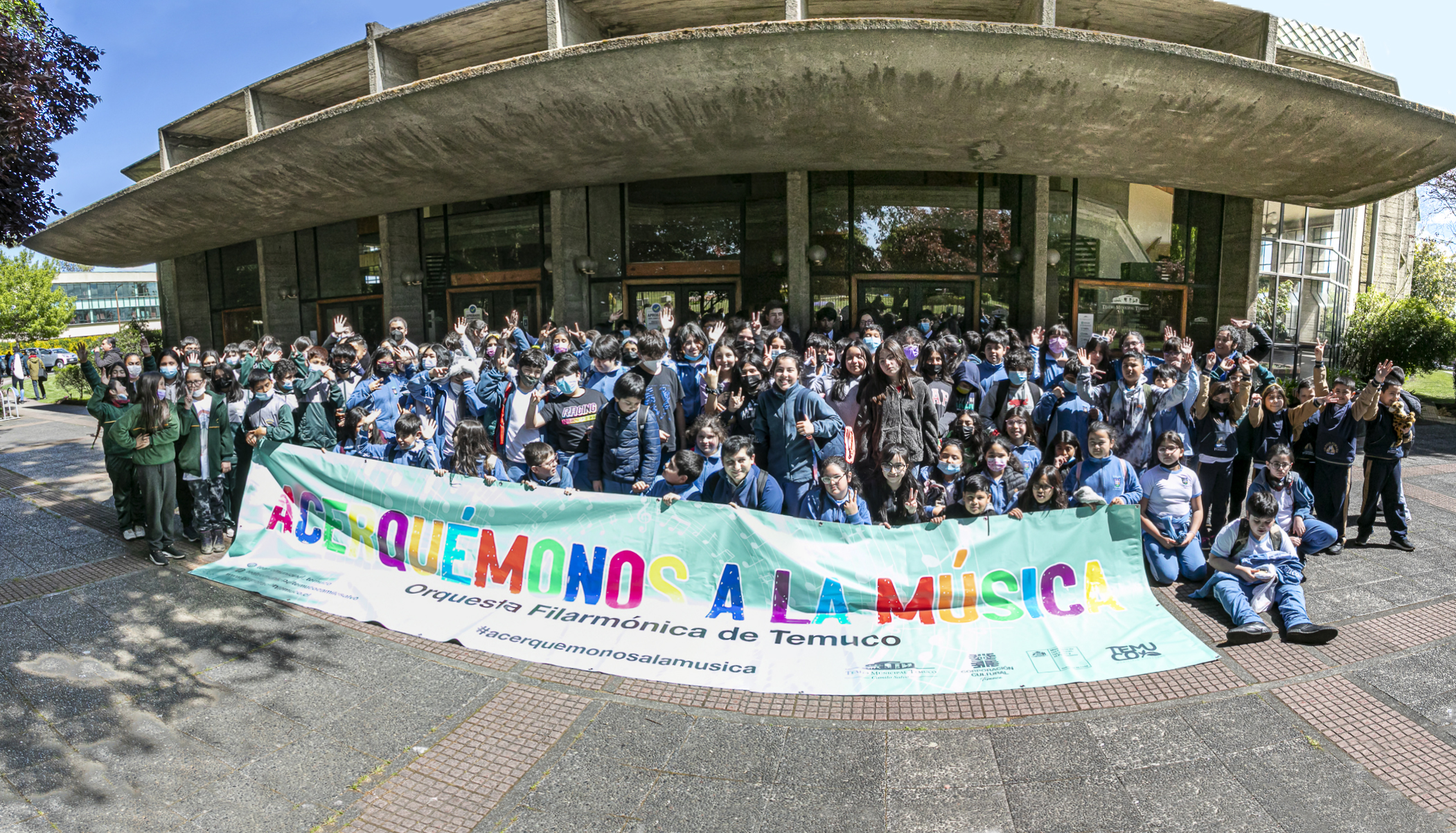 Una jornada inolvidable vivieron más de 300 estudiantes de distintas comunas de La Araucanía que participaron del concierto educacional “Acerquémonos a la Música” , realizado recientemente en el Teatro Municipal de Temuco. La actividad fue protagonizada por la Orquesta Filarmónica de Temuco, bajo la dirección del maestro David Ayma , en una presentación especialmente diseñada para niñas, niños y jóvenes en etapa escolar.