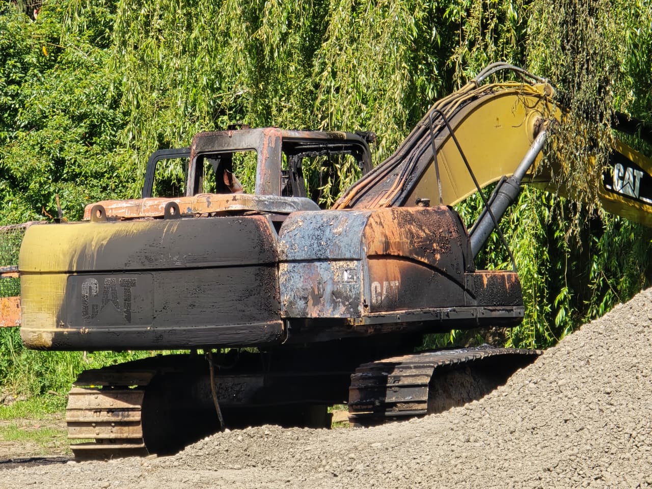 PDI desarrolla diligencias investigativas por quema de maquinaria en Carahue: en el lugar encontraron pancarta alusiva a la causa mapuche