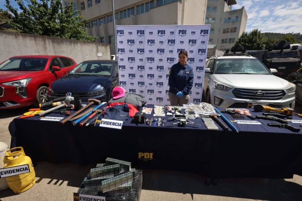 En los allanamientos policiales efectuados en las comunas de Temuco, Padre Las Casas, Pitrufquén y la localidad de Labranza, además de la comuna de Chiguayante – región del Bío Bío- se intervinieron 40 inmuebles en los cuales se encontraron armamento, munición, droga, herramientas y más de 10 vehículos para la comisión de delitos contra la propiedad, dinero en efectivo y equipos celulares, todo lo cual fue incautado junto la detención de estas personas.