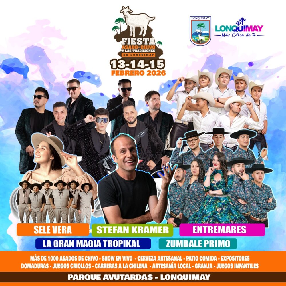 La Municipalidad de Lonquimay, liderada por el Alcalde Eduardo Yáñez y el Honorable Concejo Municipal invita oficialmente a toda la región y al país a ser parte en la Fiesta del Asado de Chivo y las Tradiciones 2026. El evento, que se ha consolidado como el epicentro de la cultura cordillerana, se llevará a cabo los días 13, 14 y 15 de febrero en el emblemático Parque Avutardas.