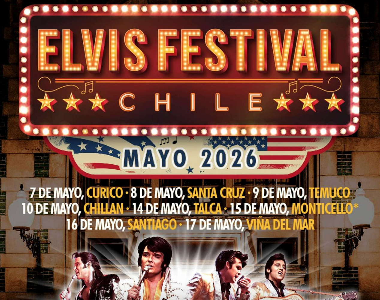 Chile se prepara para recibir uno de los eventos musicales más esperados del año. Se trata de “Elvis Festival – Chile 2026: The King Lives”, un espectáculo internacional que reúne a los mejores exponentes del legado de Elvis Presley, quienes se presentarán en distintas ciudades del país entre el 7 y el 17 de mayo.