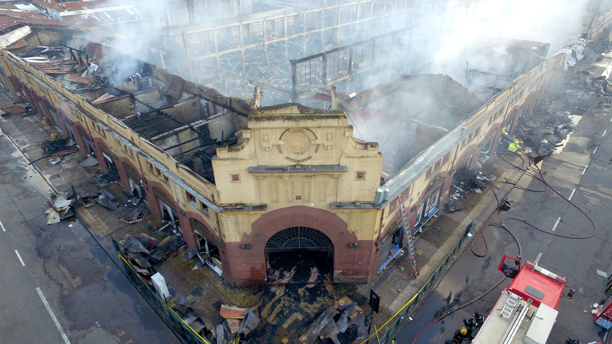 Me cambié y me fui al incendio. Cuando llegué, todo era una catástrofe y el fuego estaba completamente propagado. Junto al bombero Mario Aravena Valencia, de la Tercera Compañía, alcanzamos a acceder al interior del mercado por la entrada de calle Aldunate, que estaba en la mitad; logramos ingresar casi a la pileta que estaba en el centro. Ahí nos dimos cuenta de que no había nada que hacer. El edificio en cualquier minuto iba a colapsar; y así terminó ocurriendo.
