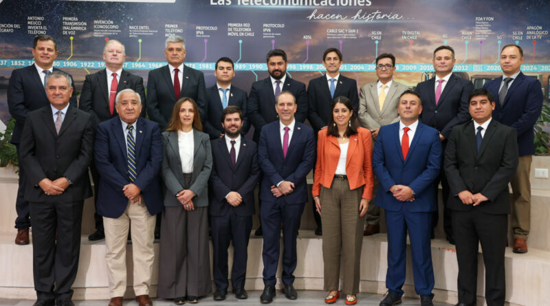 El ministro de Transportes y Telecomunicaciones, Louis de Grange, junto con el subsecretario de Transportes, Martín Mackenna, y la subsecretaria