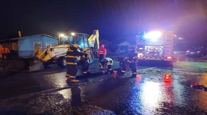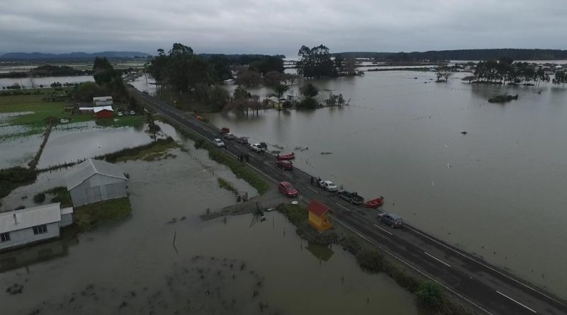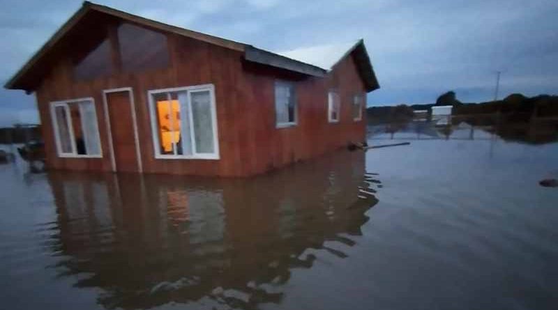 Onemi declaró este miércoles Alerta Roja para Toltén por inundación. Hasta el sector La Barra llegó el intendente de La